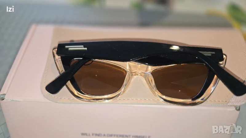 Чисто нови слънчеви очила с деликатна полупрозрачна рамка,с кутия ,калъф и кърпичка