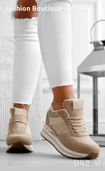 Дамски бежови маратонки, снимка 1 - Маратонки - 51248098 Дамски бежови маратонки, снимка 2 - Маратонки - 51248098 1/2