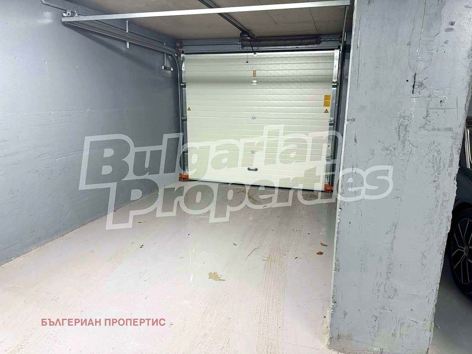 Паркомястото се намира на сутеренно ниво и предоставя възможност да бъде обособено като самостоятелен гараж от едната страна вече има изградена стена, а от другата страна може да се постави ролетна щора.