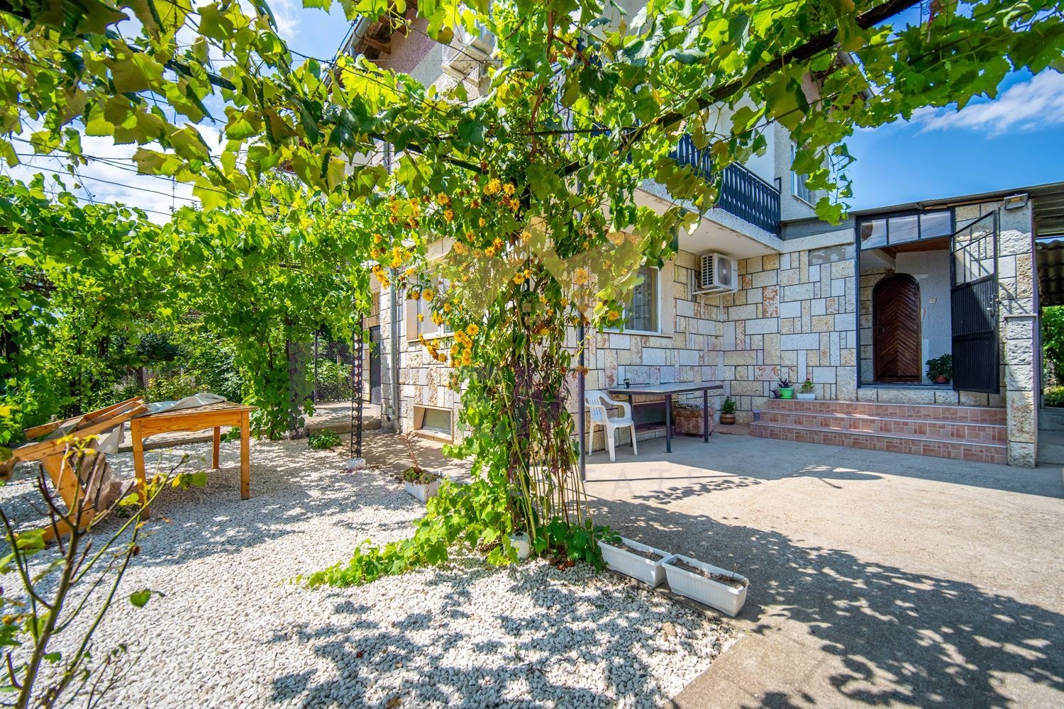 Къщата е разположена върху равен и просторен парцел с обща площ от 128 0 кв.м. Дворът е добре поддържан и облагороден, с разнообразна растителност, овощни дръвчета и уникално лозе, което придава неповторим чар на имота и възможност за собствено винопроизводство.