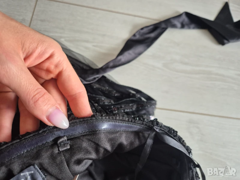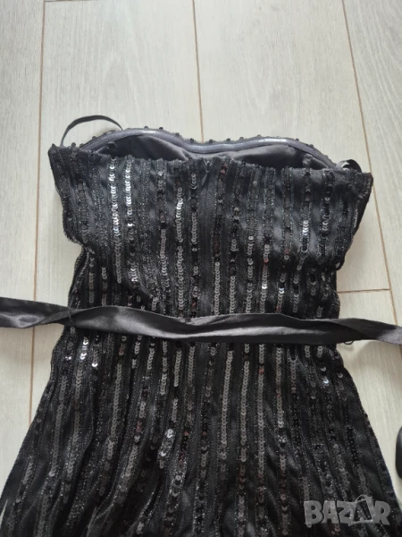 Това мога да кажа за тази рокля. Купувана е от about you. Носена е два пъти за повод, без забележки. Има силикон от вътрешната страна, ако решите да я носите, като бюстие, както и опция за слагане на презрамки. С вградени подплънки.