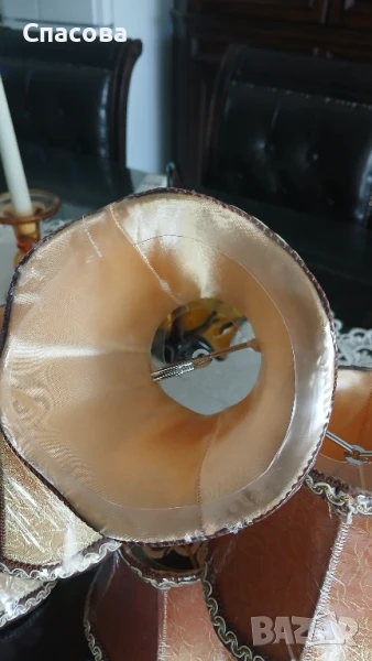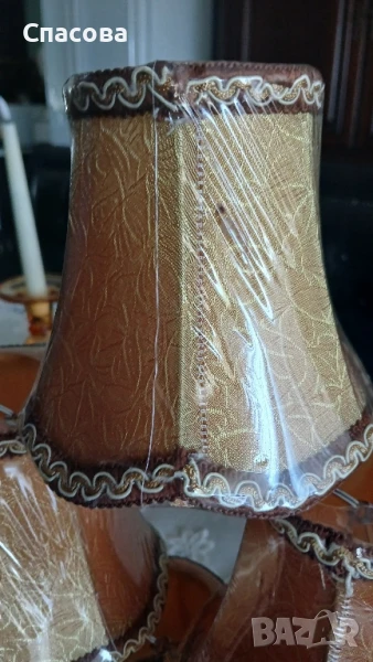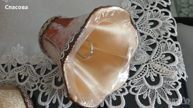 Много красиви текстилни шапки за полилей бежово-златист цвят от вътре е сатен .