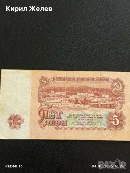 Пет Банкноти 5 лева 1974г. НРБ от соца стари редки за КОЛЕКЦИЯ ДЕКОРАЦИЯ 50768 → Обява 51250080