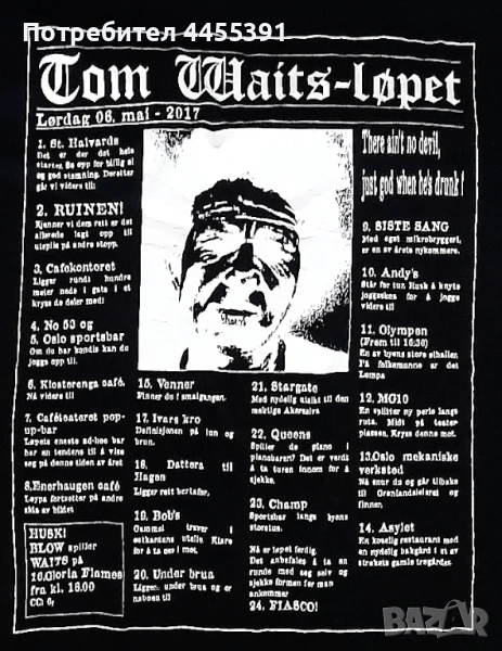 Тенискс Tom Waits. Tour 2017, снимка 1 - Тениски - 51250642 Тенискс Tom Waits. Tour 2017, снимка 2 - Тениски - 51250642 Тенискс Tom Waits. Tour 2017, снимка 3 - Тениски - 51250642 1/3