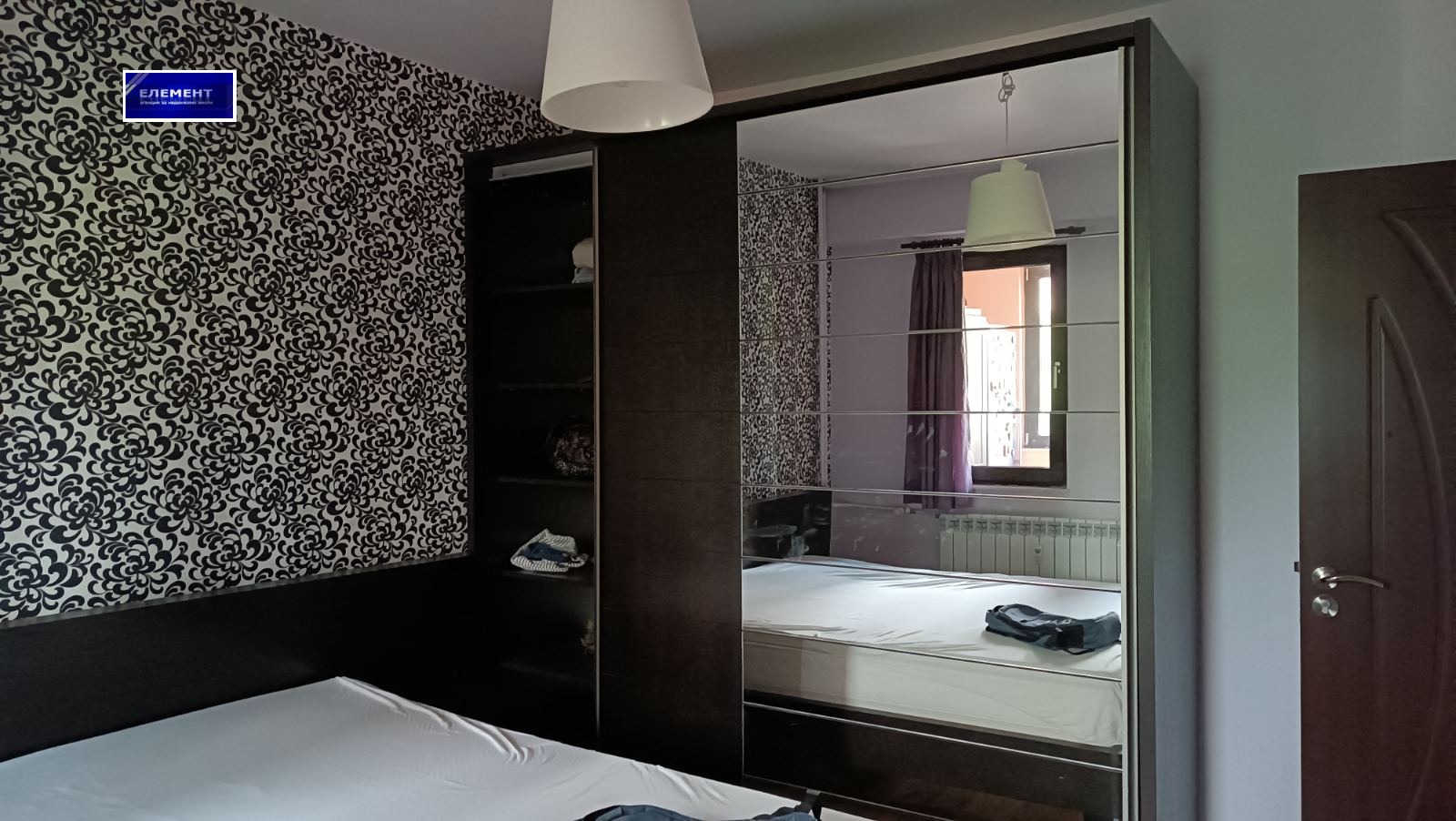 - спалня - голямо легло, голям гардероб с огледало, 2 нощни шкафчета,