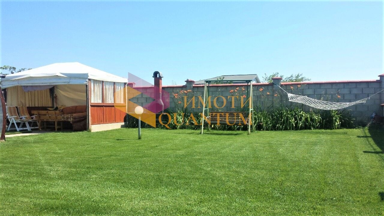 Дворното място е с площ 565 кв.м., добре поддържано с тревна площ и автоматична поливна система. В двора има изграден басейн, барбекю зона и шатра/навес от лека конструкция за приятелски срещи в топлите летни нощи. Морска панорама от кота 0 - както от двора, така и от стаите. Осигурени са 3 паркоместа в дворното място. В имота има изградена СОТ система и система за видеонаблюдение за сигурността на собствениците. Има партиди ток и вода, както и допълнително изградена хидрофорна система за по-голяма сигурност.