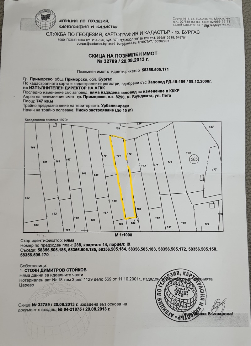 Приложена Скица за поземлен имот
