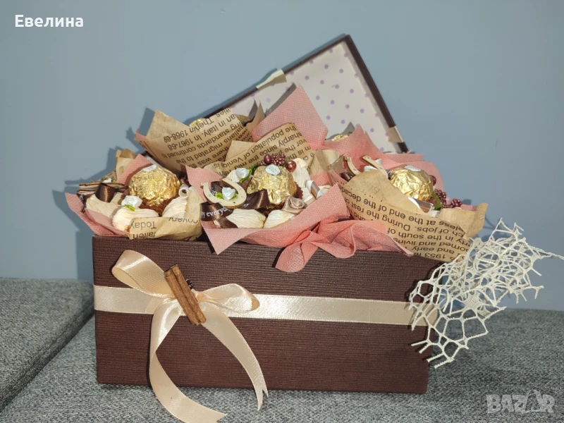 Кутия с бонбони за подарък.