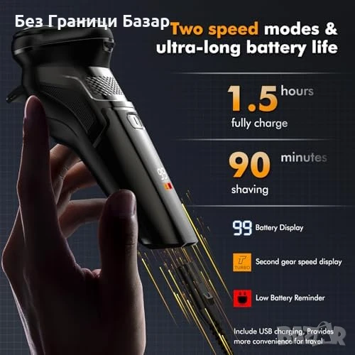 IPX7 водоустойчив – за мокро и сухо бръснене, включително под душа