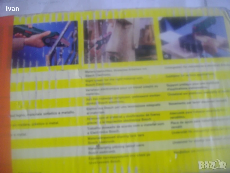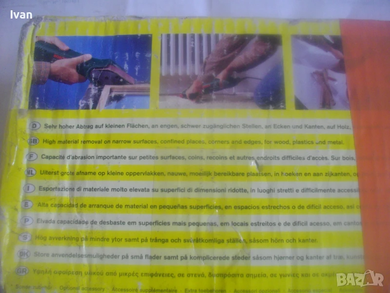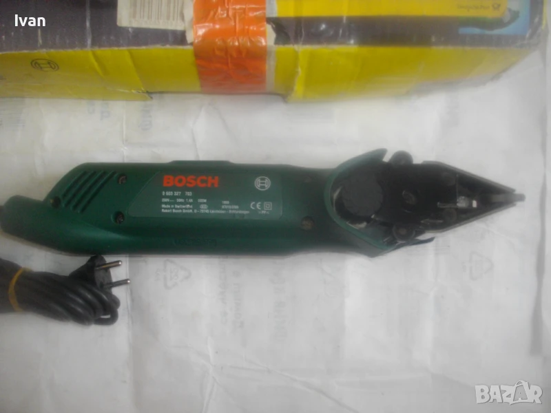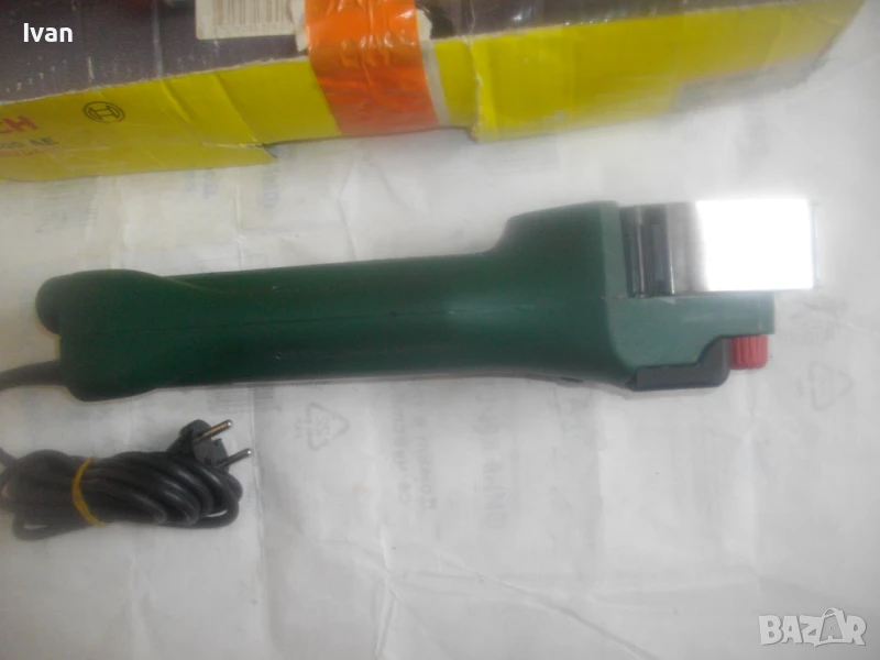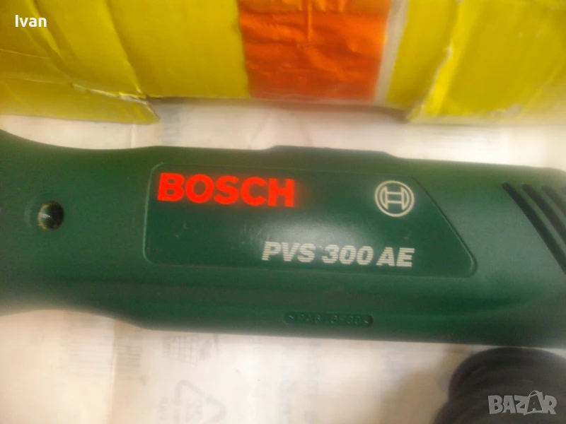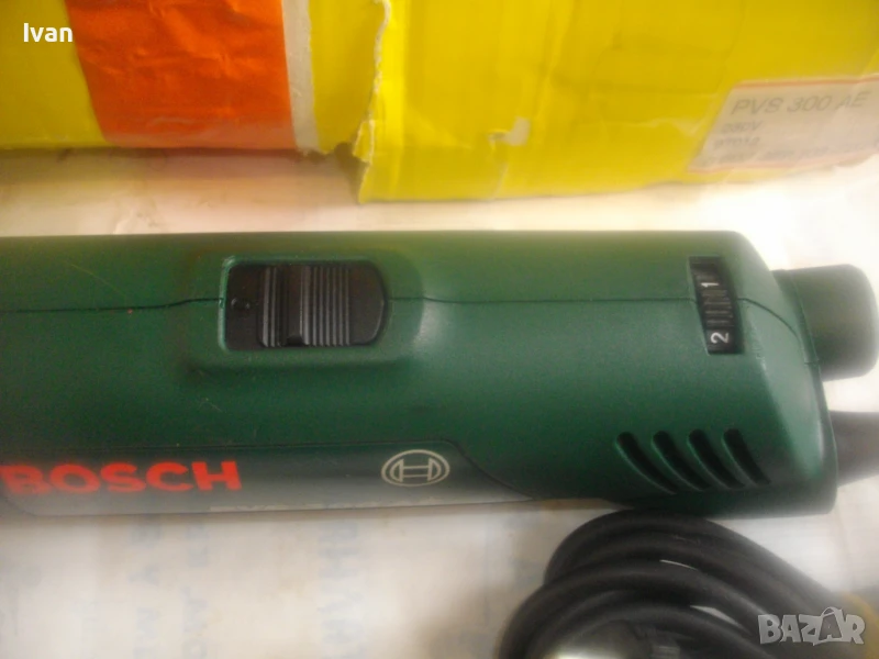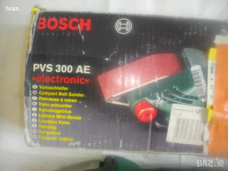 ОПИСАНИЕ на мини лентов шлайф двустранен Бош - за шлайфане труднодостъпни места. Марка и модел - BOSCH PVS 300AE Electronic. Оригинално швейцарско старо качество 1999 г - Made in SWITZERLAND. Производител - Robert Bosch GmbH - Leinfelden - Ehterdingen. Машината е почти нова, без забележки по визия и работно състояние. Отлично техническо/работно състояние. Предназначение - за шлайфане в труднодостъпни и тесни места и повърхности. Шкурковия пояс обхваща и двете старин на шлифовъчните плотове рамена на машината отпред. Мощност на мотора - 300 вата, защита - 1,4 ампера, скорост 180-240 м/мин. Горен пусков ключ с приплъзване. 6 степени на регулация на скоростта. Тегло на машината - 1,6 кг. С 1 бр. Шкурки/пояси могат са правят от всеки, като се режат ивици платова шкурка и се залепят на нужната за плочата ширина и дължина. Размер на шкурката пояс - 40 х 303 мм.
