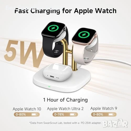 Безжично зарядно за 2 Apple Watch едновременно – идеално за семейства и двойки