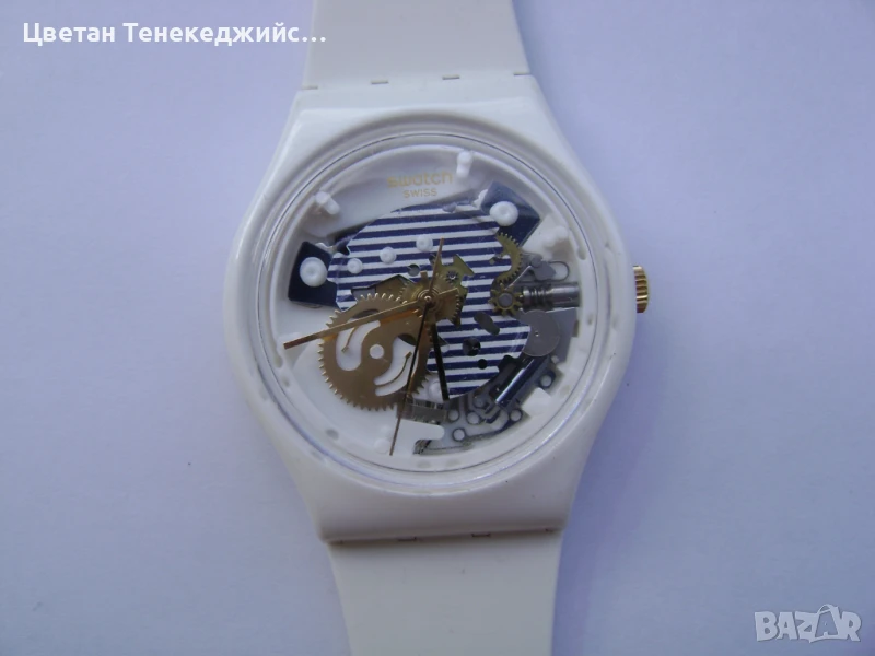 3.Унисекс часовник Swatch.Неразличим от нов.Работи точно.Водоустойчив.Каишка от полимерен материал.Диаметър на касата без коронката 34мм.-30лв.