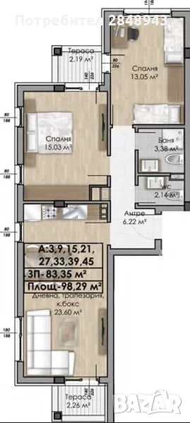 Тристаен апартамент в Жилищен комплекс Гусла Овча купел → Обява 51252038