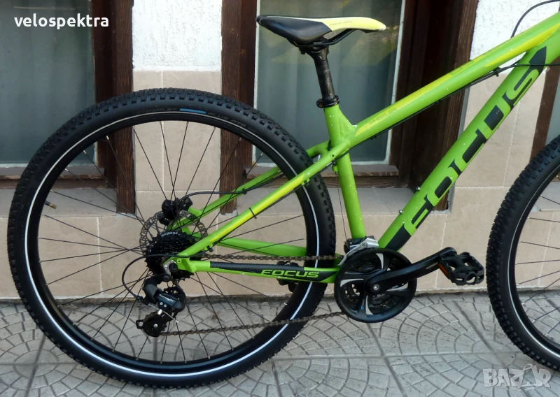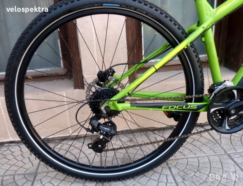 24 скорости Шимано , палцови команди 3х8 Шимано с дисплей. Две дискови хидравлични спирачки Тектро диск 180/160 .