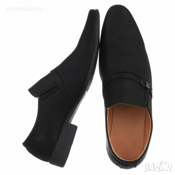 Открийте перфектния спътник за всеки стилен джентълмен! Тази черна мъжка обувка съчетава модерен дизайн с ненадминат комфорт. Изработена от висококачествени материали, горната част се отличава с изискана структура, която е не само визуално привлекателна, но и допринася за дишането. Елегантната форма и фината катарама добавят стилни акценти, а удобната стелка осигуряват комфортно прилягане през целия ден. Независимо дали сте в офиса, за официални поводи или през свободното време – тази обувка е универсална и добавя ексклузивен щрих към всяко облекло. Семплата, но модерна цветова схема я прави идеален спътник за всеки сезон, независимо дали е пролет, лято или есен. Целевата аудитория са мъже, които следят модата и ценят качеството и стила. Тази обувка е не само модно изявление, но и функционална: Неплъзгащата се подметка предлага сигурно сцепление, а заострената форма създава елегантен вид. Оставете се да бъдете спечелени от комбинацията от стил и комфорт – идеална за подчертаване на самочувствието ви с атрактивни обувки.