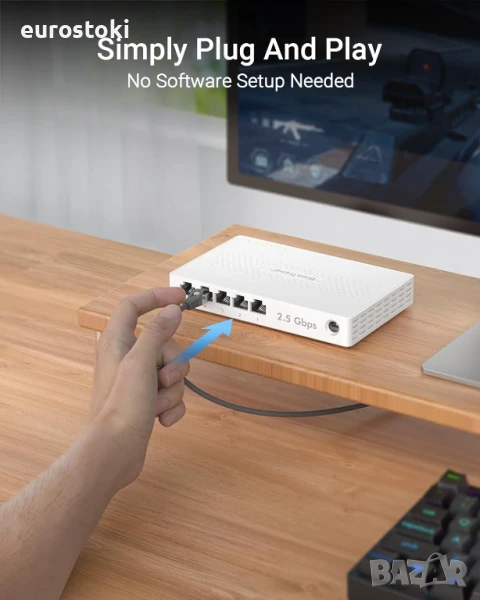 Plug and Play: Насладете се на лесна настройка с неуправляемия Ethernet комутатор, без да е необходима инсталация на софтуер. Просто го включете в рутера си, свържете устройствата си и сте готови за многогигабайтова връзка.