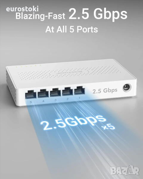 Надстройте мрежата си с 2,5G Ethernet комутатора, осигуряващ 2,5 Gbps през всичките 5 порта, 2,5 пъти по-бързо от гигабитовите комутатори. Той безпроблемно обработва множество високоскоростни устройства с капацитет на превключване до 25 Gbps.