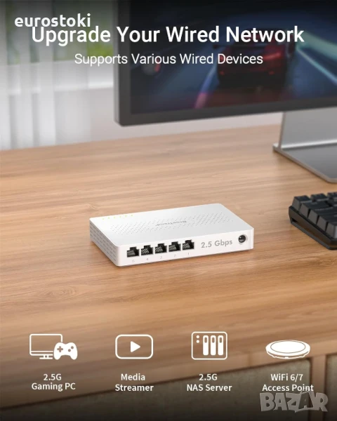 Свържете повече кабелни устройства с пет 2.5 Gbps порта, идеални за игри, LAN партита, домашно забавление и малки офиси. Съвместим с геймърски компютри, конзоли, лаптопи, смарт телевизори, WiFi точки за достъп, NAS и други.