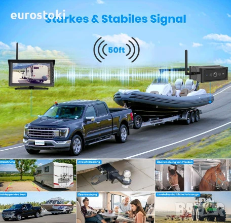 Надежден и стабилен цифров сигнал. Удължената антена на соларната камера за заден ход осигурява силен, стабилен цифров сигнал с отлични честоти на опресняване и стабилност до 15 метра. Идеална за кемпери, каравани, ремаркета, камиони, трактори и други превозни средства.