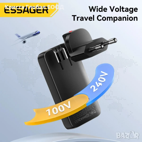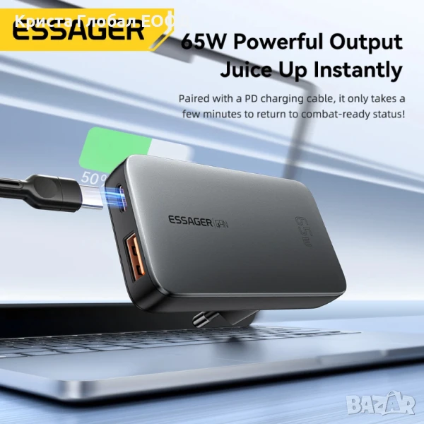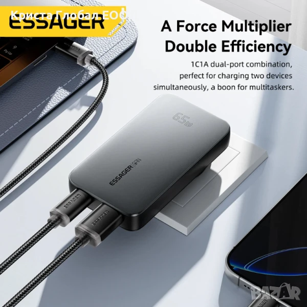 Със тънкия модел зарядно Essager с правилна ориентация на портовете можете да подновите енергията на 2 устройства