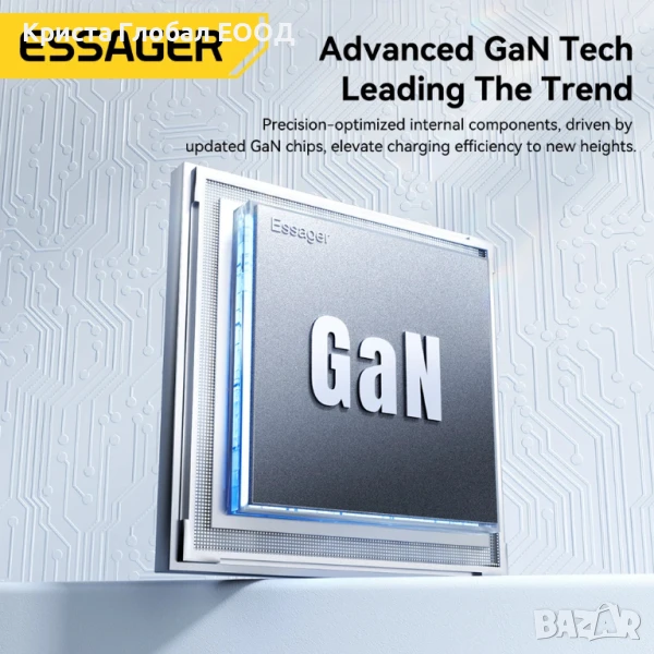 използва галиев нитрид (GaN), който осигурява добро разсейване на