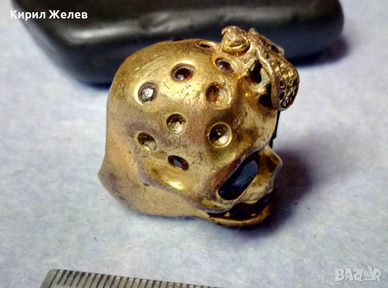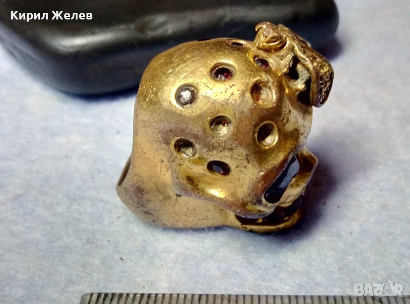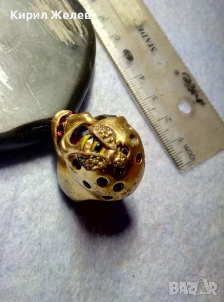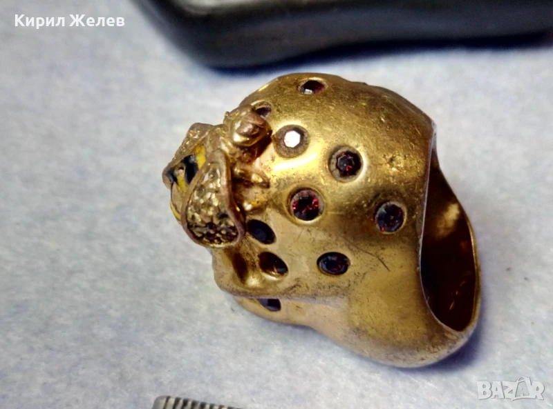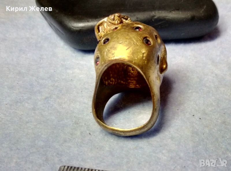 СТАР НЕО ГОТИК СТИЛ ПОЗЛАТЕН МЕДЕН ПРЪСТЕН ИНКРУСТИРАН с КАМЪНИ АМЕТИСТ и ЕМАЙЛ 40404