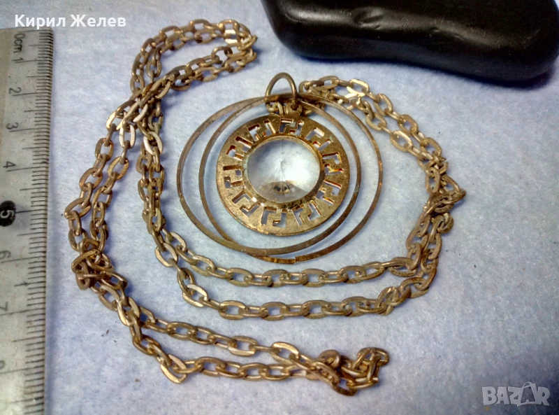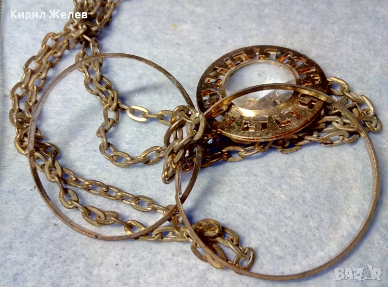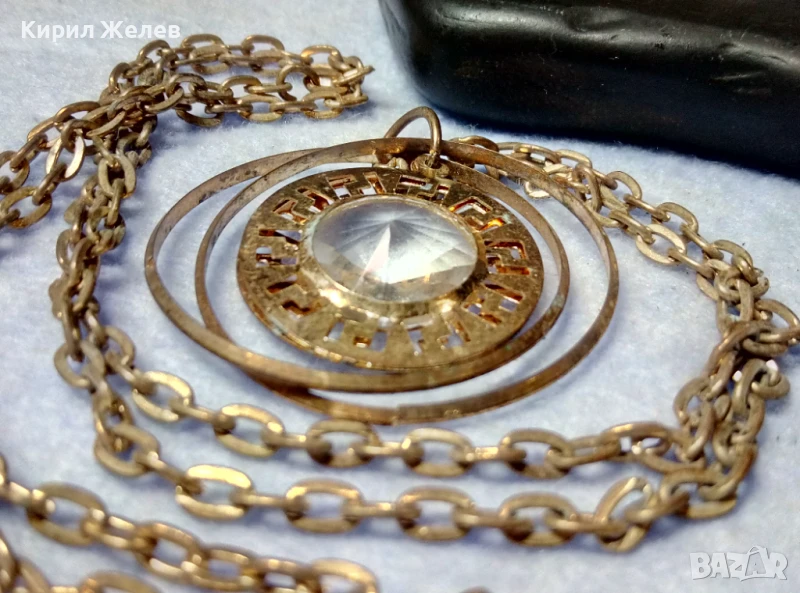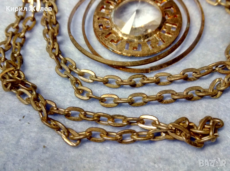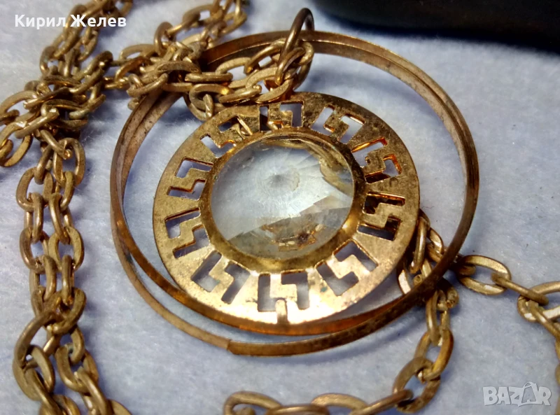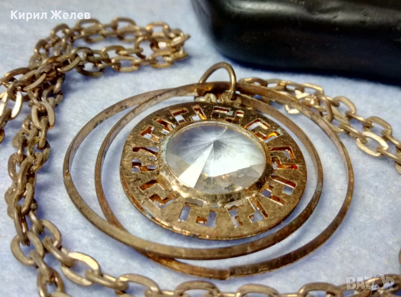 ВЕЛИКОЛЕПНО ПОЗЛАТЕНО ВИНТИДЖ АРТ КОЛИЕ с МЕДАЛЬОН с ФАСЕТИРАН БОХЕМСКИ КРИСТАЛ 40779