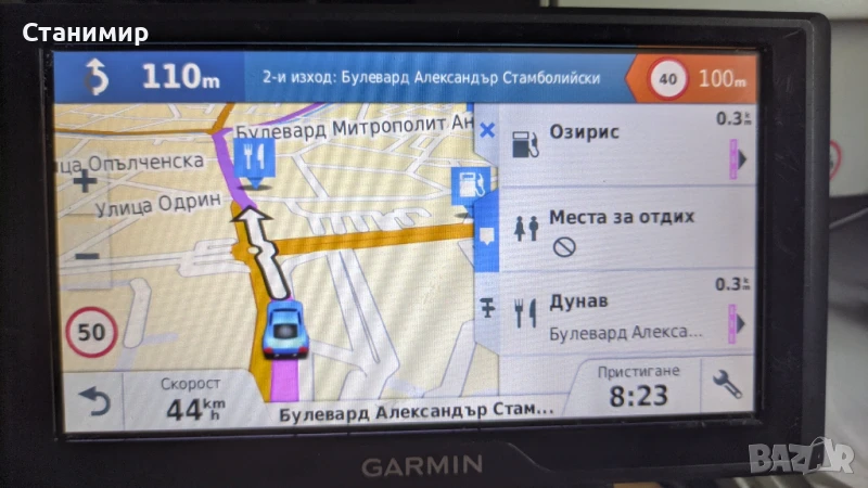 Устройството ви уведомява за червени светлини и камери за скорост в близост.
