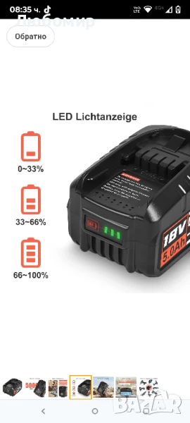 Висока производителност и LED дисплей: Батерия с капацитет 5000mAh за система GLORIA /Gardena/Bosch PBA/PSB/PSR 18V, подходяща за повечето домашни и градински инструменти Bosch 18V, осигурява мощна мощност за инструментите, времето за зареждане на батерията е приблизително 60 минути с интелигентен LED дисплей за управление на мощността, за да знаете нивото на мощност по всяко време.
