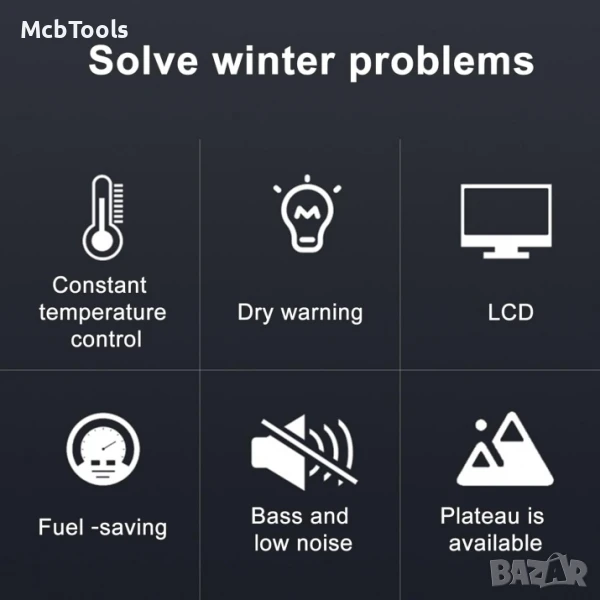Разполага със самостоятелен дизелов нагревател за въздух (суха печка) с електронно управление.
