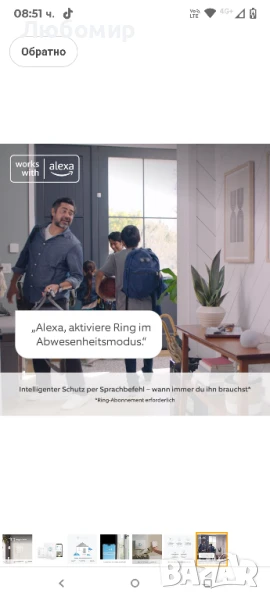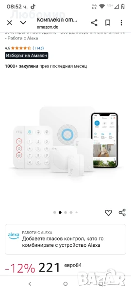 Сдвоете със съвместими устройства с Alexa, за да активирате и деактивирате вашата охранителна система Ring Alarm с гласа си.