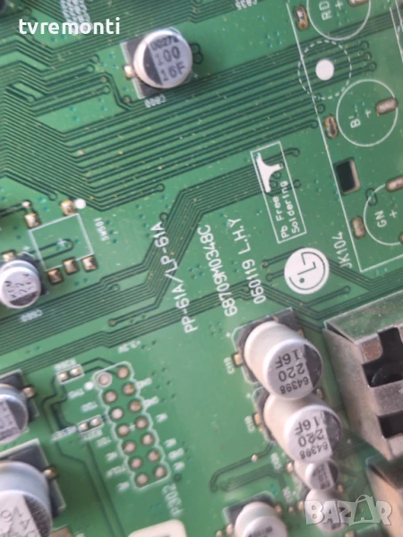 Main Board 68709M0348C PP61A/ LP61A 060119 за 26-инчов телевизор LG 26LC2R с дисплей T260XW02 V5. Платката е използвана, но гарантирано работеща, демонтирана от телевизор със счупен дисплей. Тествана е от нашия техник.