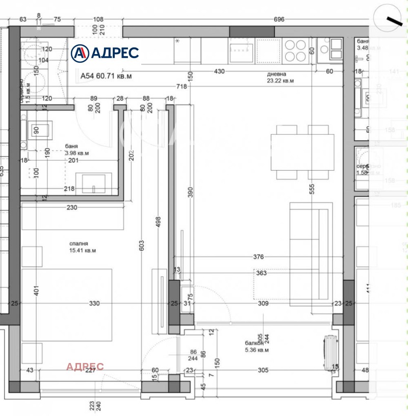Представяме ви просторен и функционален Двустаен апартамент, ситуиран в модерен и затворен жилищен комплекс. Жилището се състои от голяма дневна, спалня, тераса, сервизно помещение, баня/тоалет. С опция за покупка на паркомясто. Качествено строителство. Архитектурата на комплекса съчетава изчистена визия на сградите.