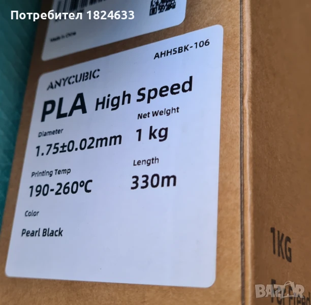 Оригинален PLA филамент ANYCUBIC High-Speed Filament 1.75mm 1кг / 5кг / 10кг. Оригинална затворена опаковка. Черен.