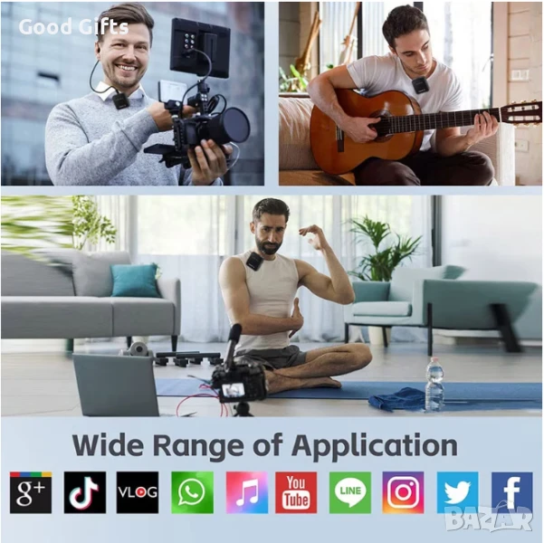 Насладете се на професионално качество на звука с този безжичен петличен микрофон, проектиран за удобно и ясно аудио при заснемане на влогове, интервюта, подкасти и онлайн стрийминг. Комплектът включва два компактни предавателя с щипка и универсален 3-в-1 приемник, съвместим с iPhone, Android устройства, DSLR камери, таблети и лаптопи.
