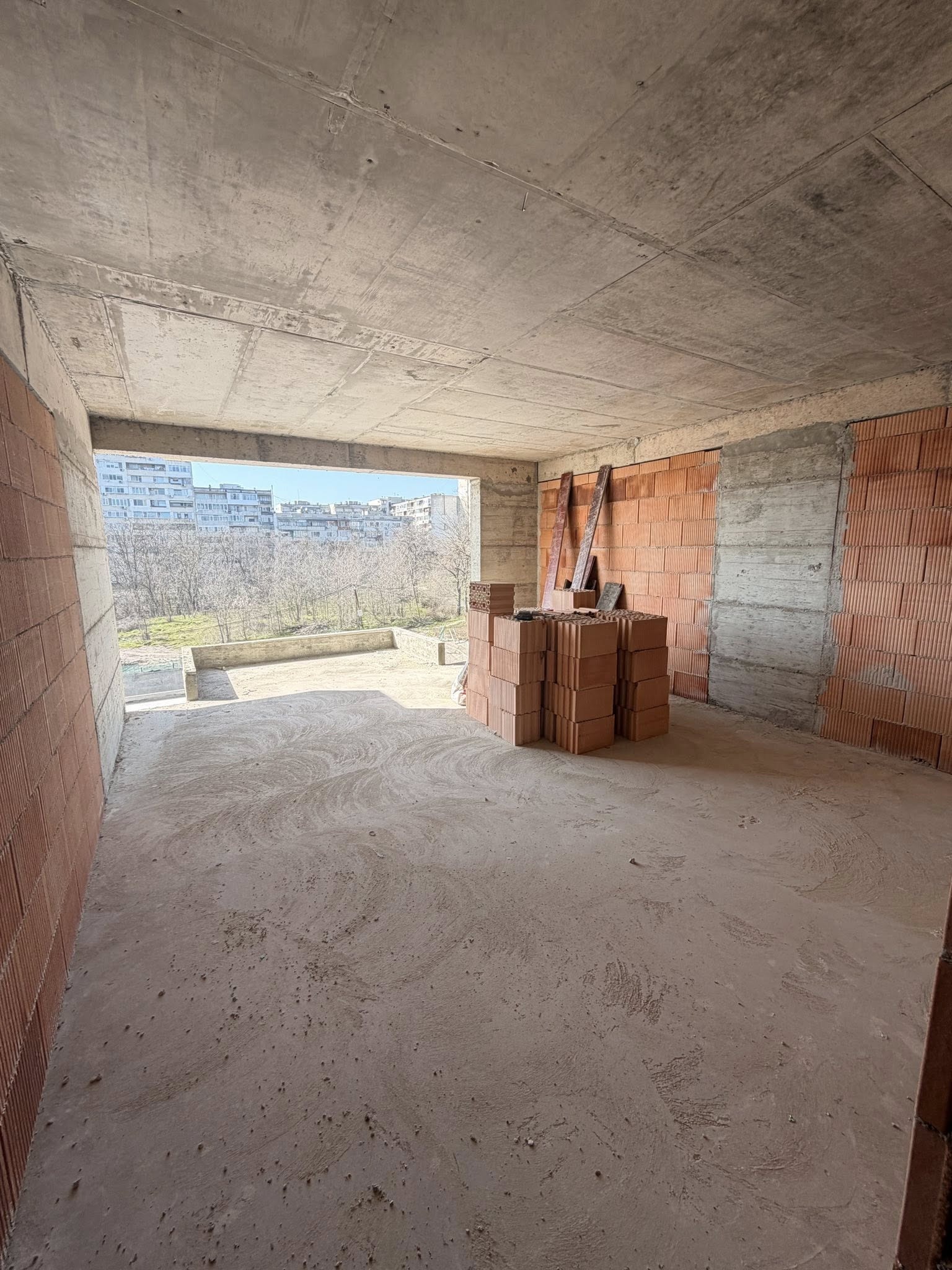 Санитарен възел: стени и таван мазилка, под замазка, без санитарно обзавеждане;