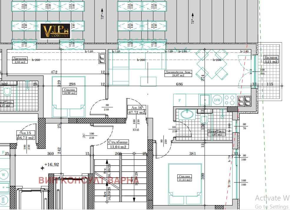 Апартамент 16 ще се намира на седми етаж от общо десет в сграда 1 с два асансьора и контролиран достъп.