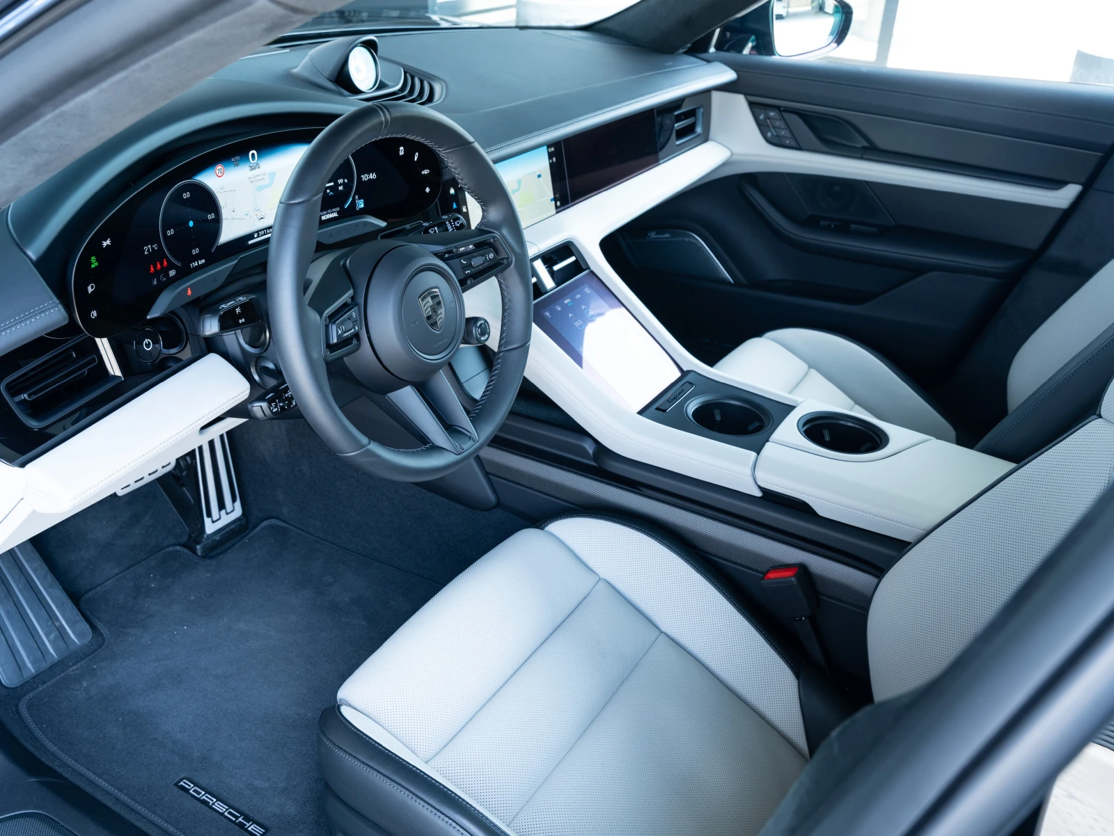 Автомобилът е закупен нов от официалното представителство на марката. Намира се в Порше Център София на бул. Цариградско Шосе 168. Витоша Спортс Карс ООД е официален представител на луксозната спортна марка Порше за България. Автомобилът има пълна сервизна история. Екстериорен цвят: Черен Jet Black Metallic Интериор: Двуцветен кожен интериор, кожа с гладко покритие, Black/Crayon Оборудване: Рейки на покрива от черен алуминий, Лайсни на страничните прозорци в черно (ярък гланц), Mоделно лого отзад в черен гланц, Декоративни елементи с лаково покритие Black (гланцово), Арка на калника в черно, Колела боядисани в черно (ярък гланц), Уплътнителна смес за гуми и електрически въздушен компресор, 21-инчови колела Cross Turismo Design, Предпазни колани в цвят Crayon, Комфортни седалки отпред (14-посоки, електрически) с пакет памет, 4+1 места, Функция за масаж отпред, включително вентилация на седалките отпред, Пакет акценти в черно, Алуминиеви педали, Дисплей за пътника, Аудио система Burmester 3D High-End Surround Sound, Подготовка за Porsche Rear Seat Entertainment, Система Porsche Rear Seat entertainment, Затъмнени HD-Matrix LED светлини с четириточкови LED дневни светлини в Glacier Iceblue, LED плафони за врати с лого PORSCHE , Панорамен покрив с променлив контрол на светлината, Термично и шумоизолирани, тонирани стъкла, Head-Up дисплей с добавена реалност, Асистент за нощно виждане, Комфортен достъп, Авангардна климатична система (4 зони), Система за контрол на качеството на въздуха в купето, Панорамен обзор (360 камера) с активна поддръжка за паркиране, Подготовка за видеорегистратор Porsche Dashcam отпред и отзад, Асистент за смяна на лентата, Странични въздушни възглавници в задната част, Porsche InnoDrive включващ адаптивен круиз контрол, Спойлер на покрива, боядисан в черно (ярък гланц), Задвижване на четирите колела, Porsche E-Performance Powertrain с по едни синхронен електрически мотор с постоянни магнити на предния и задния мост, Батерия с по-голям капацитет Performance Battery Plus, Едностепенна трансмисия на предния мост и двустепенна трансмисия на задния мост, Кормилно серво управление плюс, Управление на задния мост, Система Porsche Torque Vectoring Plus (PTV Plus), Пакет Sport Chrono вкл. Режим Push-to-Pass и Track Endurance, Porsche Ceramic Composite Brake (PCCB), спирачни апарати с жълто покритие, Адаптивно въздушно окачване, включващо Porsche Active Suspension Management (PASM), Звукова система Porsche Electric Sport Sound, Болтове за колела против кражба, Централни части на колелата с герб на Porsche в Turbonite, Система за следене на налягането в гумите (TPM), GT многофункционален спортен волан от кожа, включително превключвател за режими и отопление на волана, Опори за глава с релефно обозначение на модела отпред, Интериорен пакет Carbon matt, Отопление на седалките (отпред и отзад), Подгряване на волана, Волан с електрически механизъм за регулиране, ISOFIX/I-Size точки за монтиране на детски столчета на задните външни места, Предпазители за праговете на вратите Carbon matt, осветени, Пакет за съхранение, Облицовка на тавана Race-Tex, Модул Navigation High, Отделение за смартфон с безжично зареждане (до 15 W), Дигитално радио, USB-C бързо зареждане, Капак на куплунга за зареждане от страната на водача и предния пътник, Система Porsche Intelligent Range Manager, Термопомпа, Бордово AC зарядно устройство с до 11 kW мощност на зареждане, Кабел за зареждане (Mode 3), Светлинна лента с черно лого PORSCHE, Електрически сгъваеми външни огледала вкл. осветление, Система за разпознаване на пътни знаци, Амбиентно осветление, Алармен