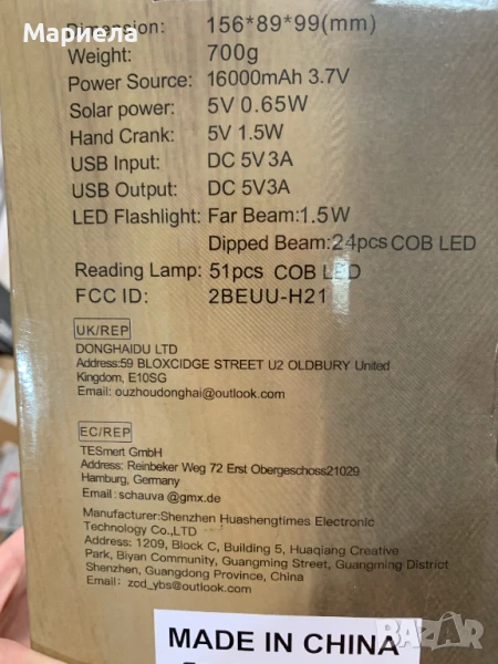 Масивна батерия с капацитет 16000mAh и удължено време на работа: Огромната вградена батерия с капацитет 16000mAh захранва радиото до 180 часа (при средна сила на звука), лампата за четене за 58 часа или яркото LED фенерче за 30-58 часа.