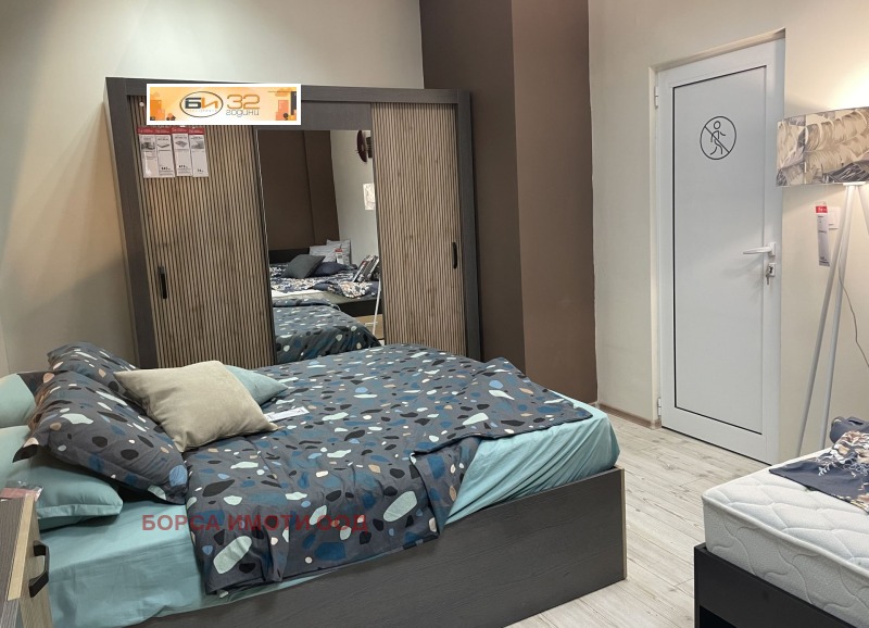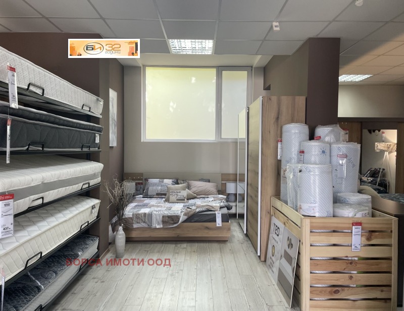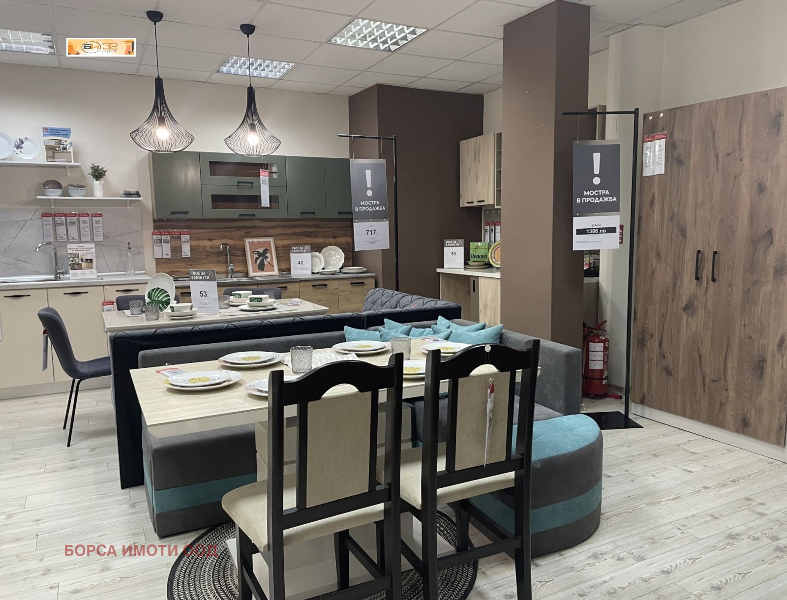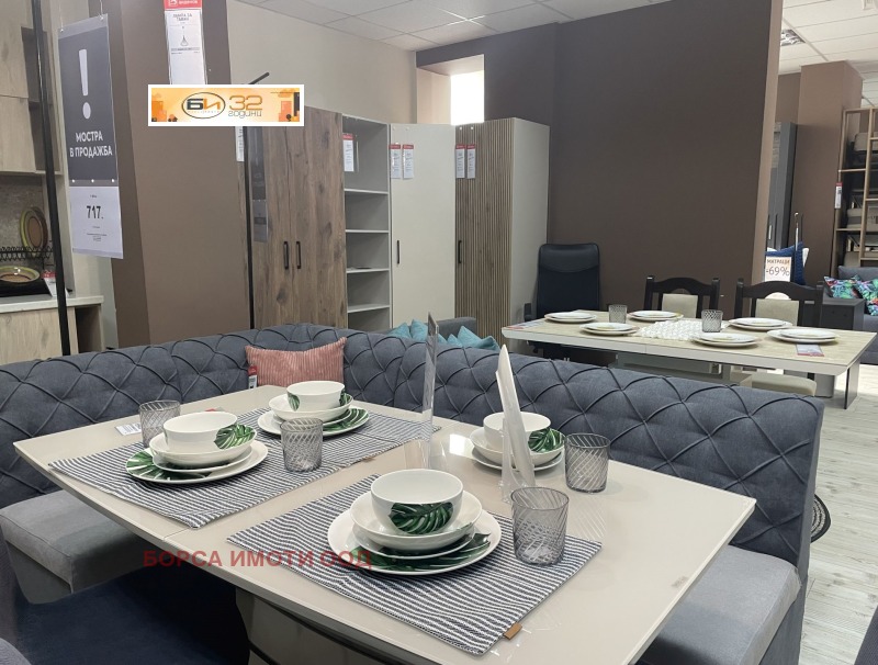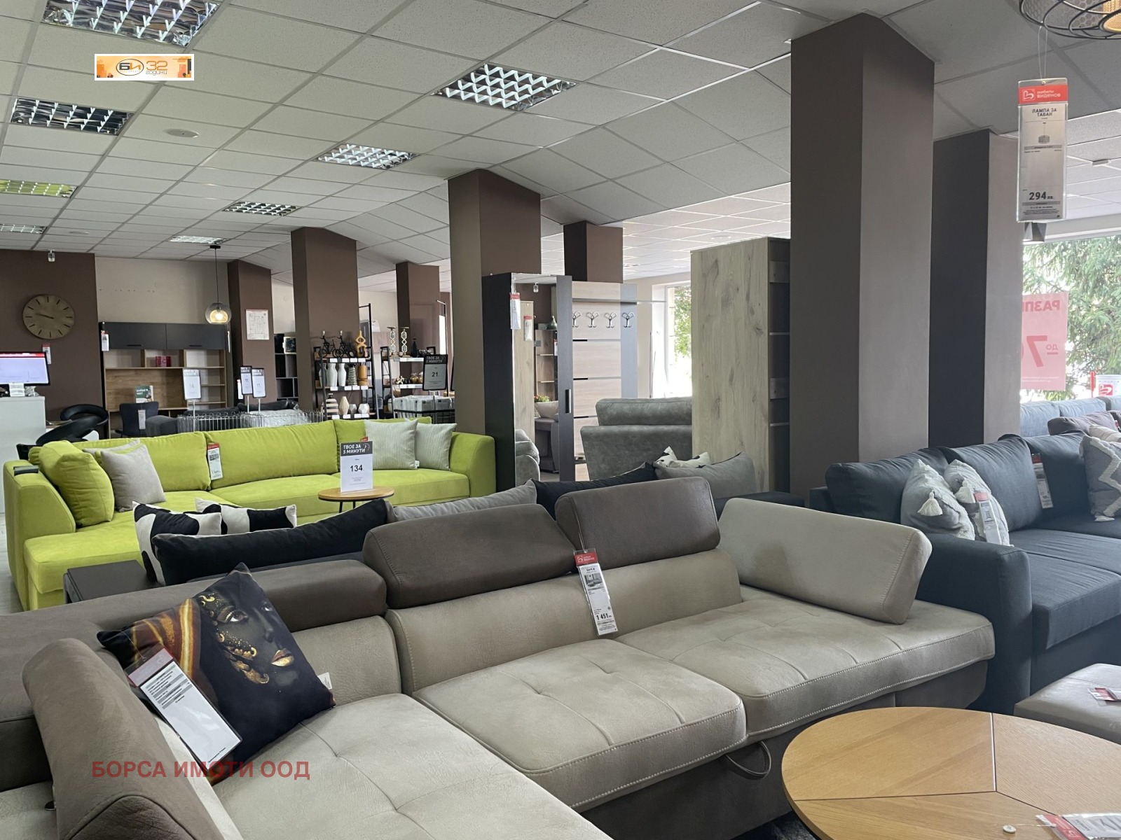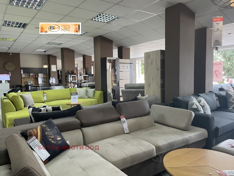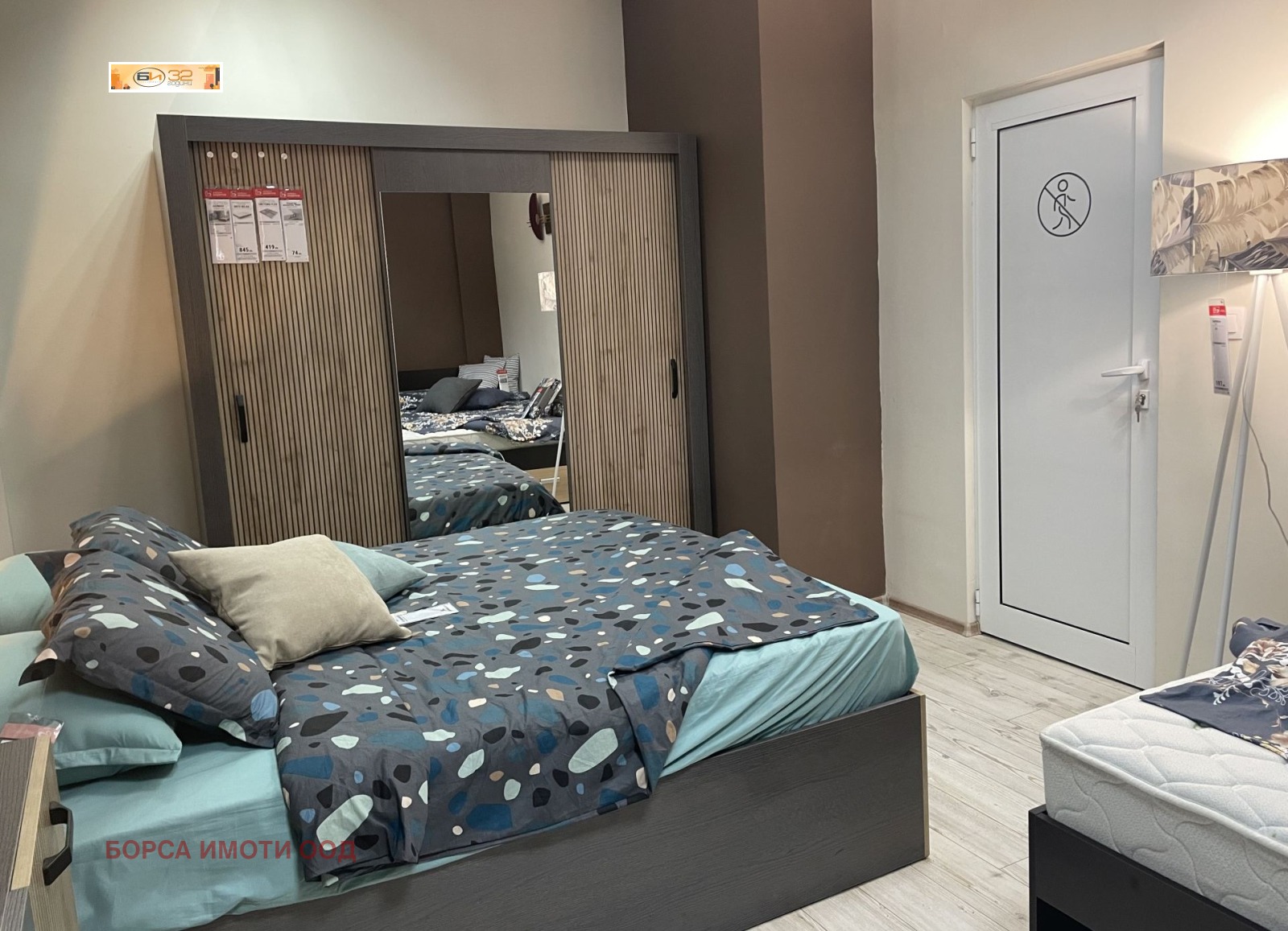 МАГАЗИН Централна част, ЗП - 264.30 кв.м., състоящ се от търговска зала 194.30 кв.м., два склада 57.00 кв.м., помещение за персонала и санитарен възел 13.00 кв.м., стъклени витрини, подова настилка - ламиниран паркет и мрамор, стени латекс, окачен таван с осветителни тела, санитарен възел - фаянс и санитария, тераса пред целия магазин, изградени пешеходен и транспортен достъп, рампа за зареждане, сградата е разположена на главна пътна артерия в града, в близост до хипермаркет Кауфланд , зад сградата има вътрешен двор с място за паркиране на автомобили, даден под наем