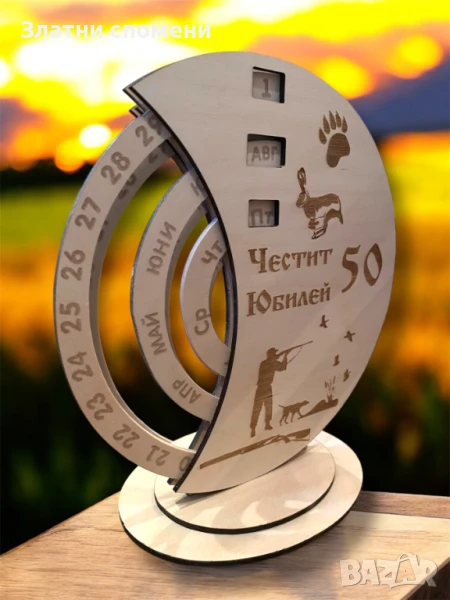 ✨ Уникален настолен вечен календар, създаден с внимание към детайла – перфектен подарък за мъж, който празнува своя 50-ти юбилей. Изработен от шперплат, съчетава функционалност и тематичен ловен дизайн – подходящ за ценители на природата, лова и ръчната изработка.