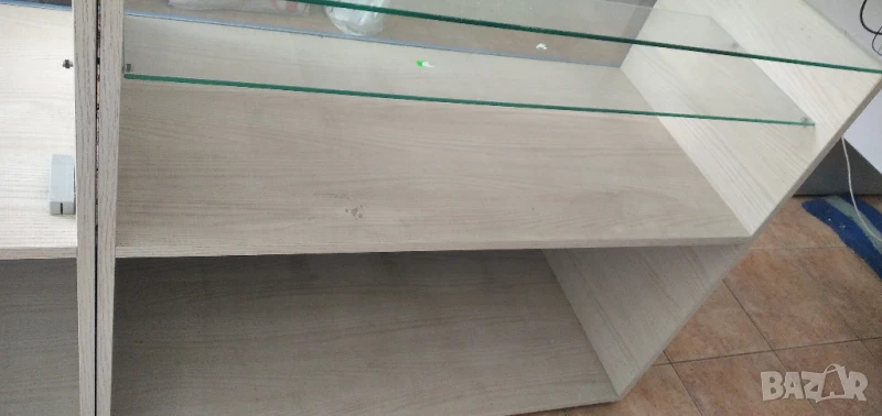 1. Витрина сразмери: дълж. 100см.* шир.50 см.* вис.85 см.- 3 броя, ед.цена 100 лв./ бр. (снимки №1 и №2) - син цвят отпред, стъкло отгоре.