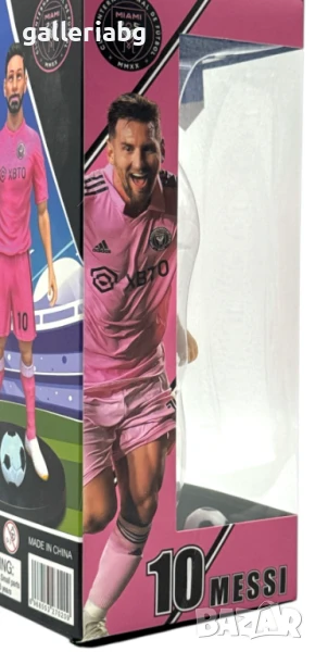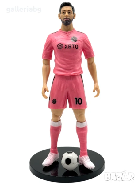 Фигурка на легендарния Lionel Messi с розовия екип на Inter Miami и номер 10. Моделът е представен с детайлно оформено лице, футболна топка и стабилна черна стойка. Включена е и кутия със снимка на играча и клубното лого, което подчертава колекционерския характер на артикула.