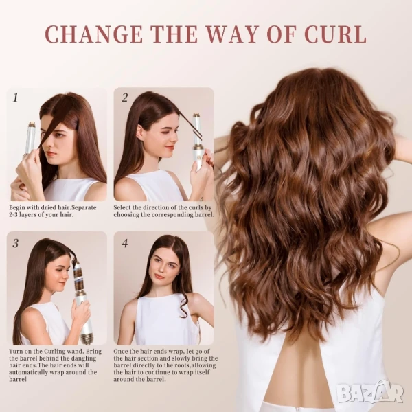 Този комплект е проектиран да отговори на всяка нужда за стайлинг на косата. Той включва 6 сменяеми приставки, които ви позволяват да постигнете разнообразни визии: