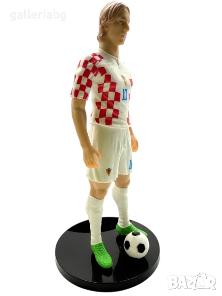 Детайлна фигурка на Лука Модрич с емблематичния кариран екип на националния отбор на Хърватия. Играчът е представен с номер 10 и името си на гърба, а към модела е включена стойка с футболна топка. Фигурката пристига в стилна кутия с клубен дизайн и снимка на футболиста.