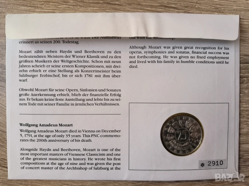 Австрия 25 шилинга 1956  Амадеус Моцарт нумисбриф, снимка 1 - Нумизматика и бонистика - 51261989 Австрия 25 шилинга 1956  Амадеус Моцарт нумисбриф, снимка 2 - Нумизматика и бонистика - 51261989 Австрия 25 шилинга 1956  Амадеус Моцарт нумисбриф, снимка 3 - Нумизматика и бонистика - 51261989 Австрия 25 шилинга 1956  Амадеус Моцарт нумисбриф, снимка 4 - Нумизматика и бонистика - 51261989 1/4