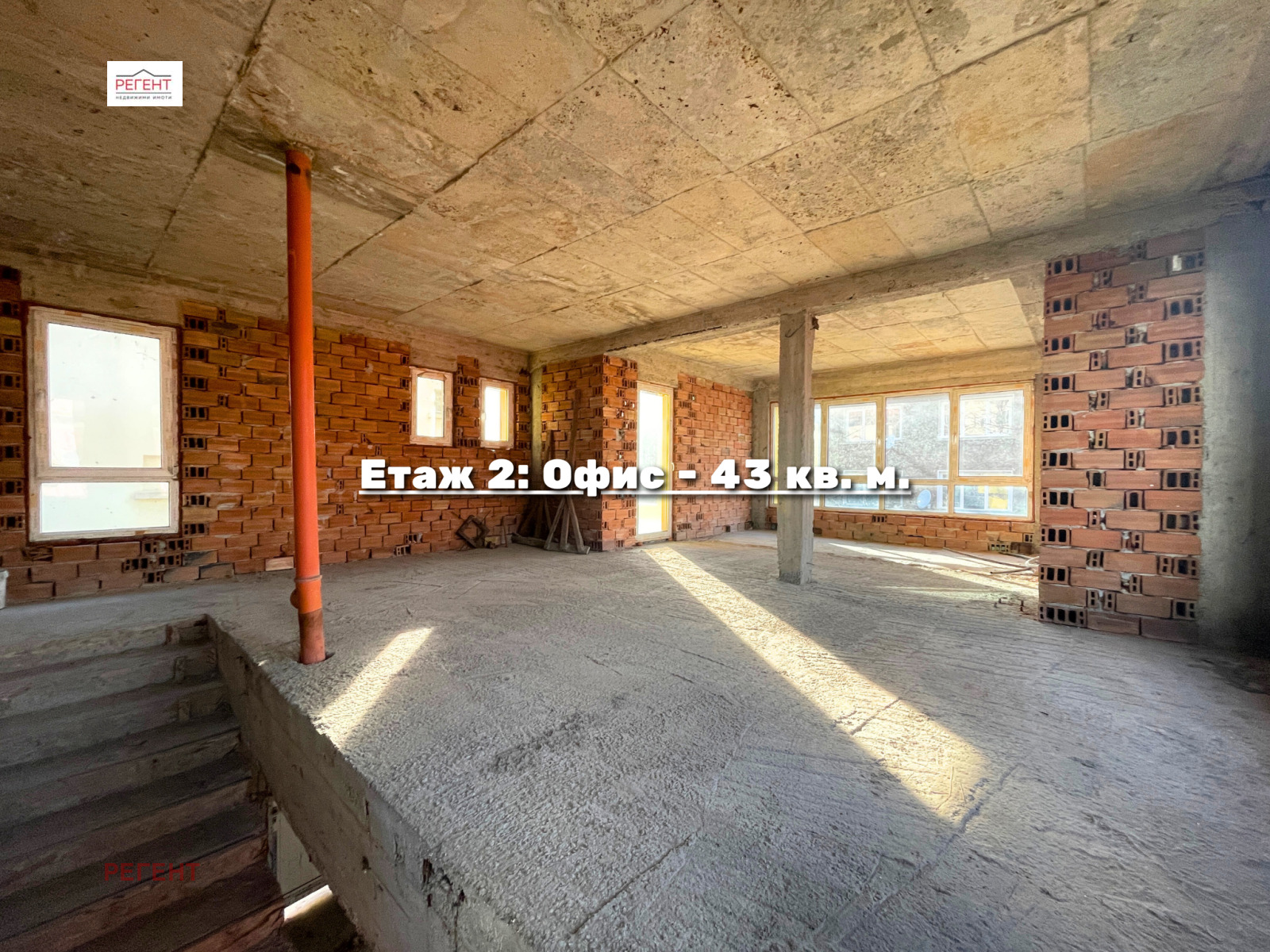 Имотът се намира в двуетажна сграда със смесено предназначение, с още три самостоятелни обекта. На първия етаж са разположени две помещения едното с площ от 66 м2, с директен достъп от улицата и товарен вход, подходящо за търговска дейност, а другото с площ от 51 м2, в задната част на сградата, с прилежащ двор и предназначение за обществено хранене. Вторият етаж включва два офисни обекта първият с площ от 81 м2, с изглед към улицата и просторна тераса, а вторият 43 м2, ориентиран към вътрешния двор и разполагащ с две тераси. Около сградата са налични паркоместа.