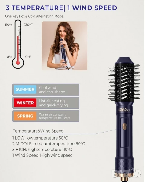 * 1 x Кръгла четка за горещ въздух: Идеална за придаване на обем и оформяне на краищата.