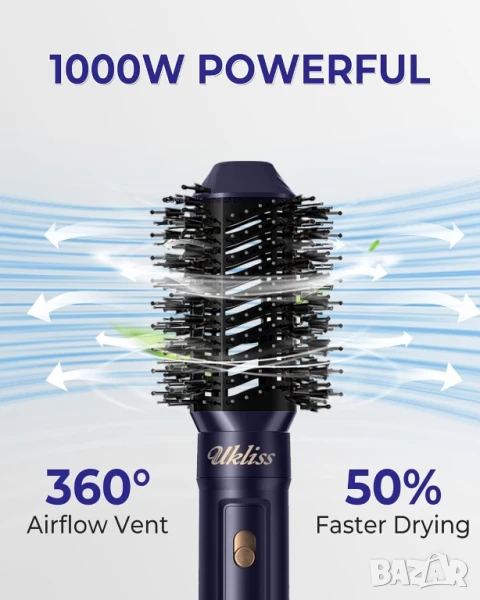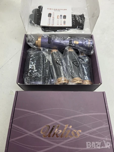 UKLISS Стилизатор за коса 6в1 - йонен сешоар, въздушна маша за къдрици