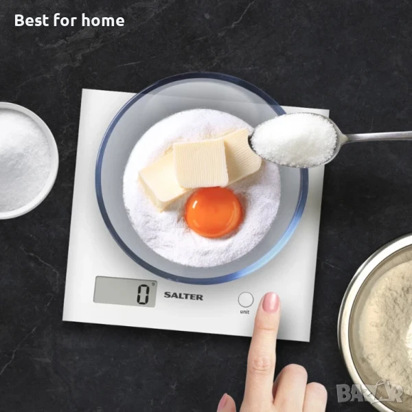 Измервайте всичко с лекота благодарение на дигиталните везни Salter Arc с включена батерия CR2032, за да можете да започнете да готвите веднага.